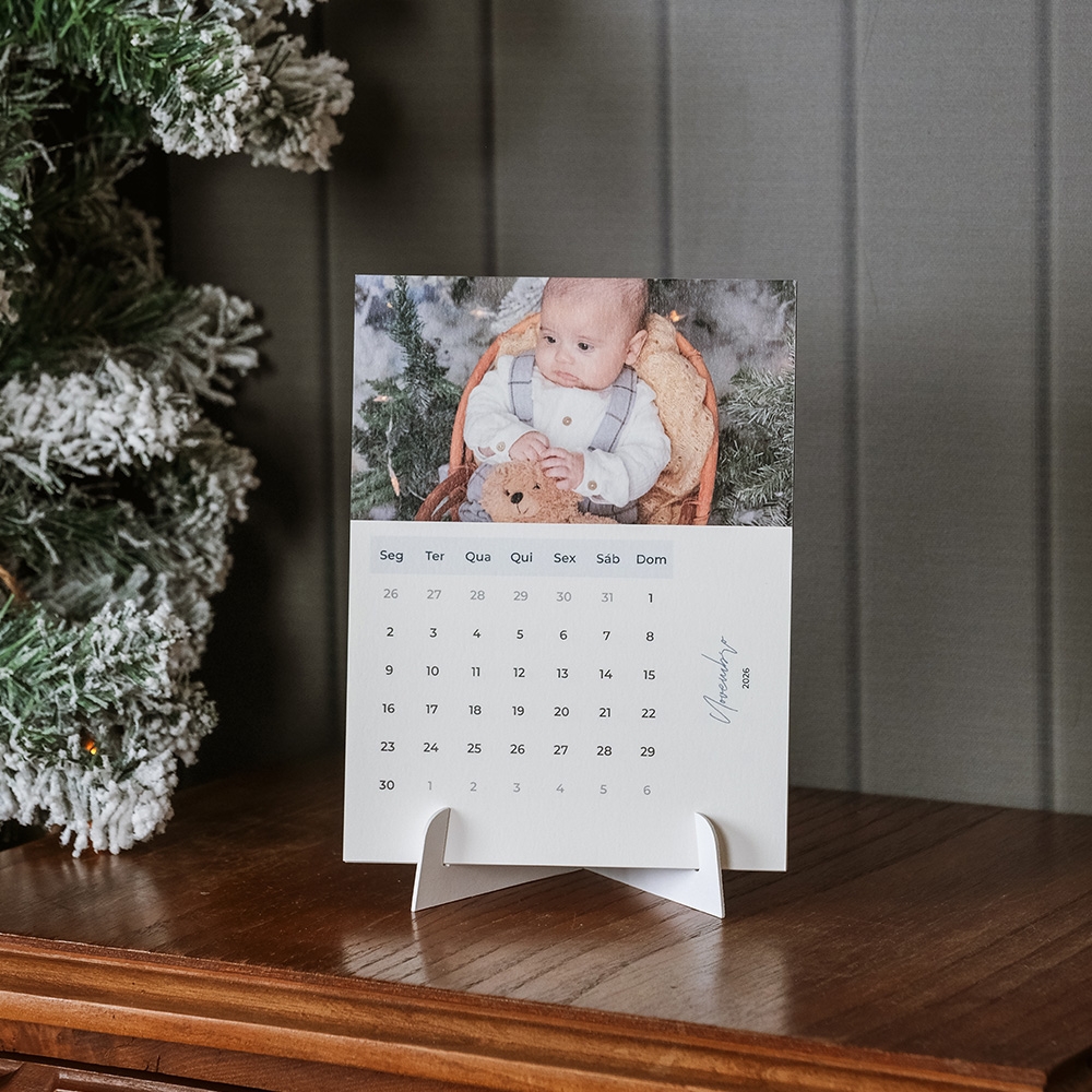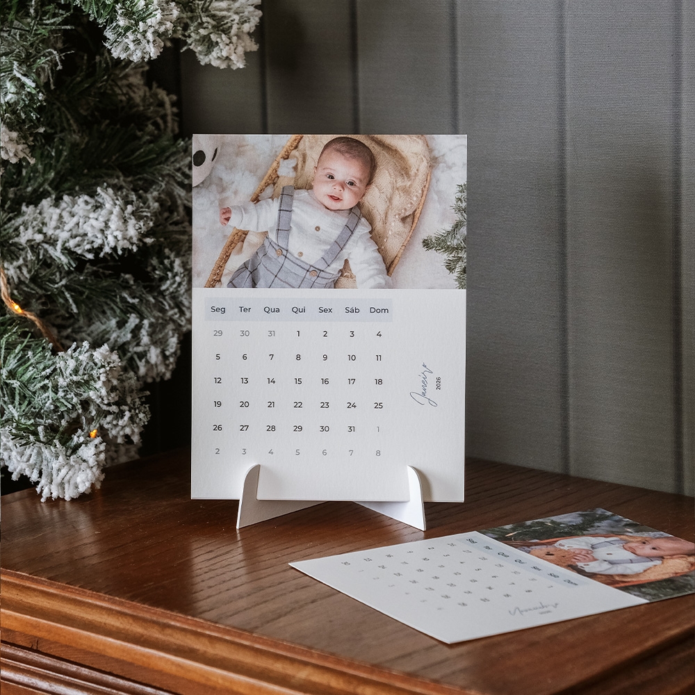 O Christmas Calendar irá decorar qualquer secretária com os momentos mais bonitos. Este produto é composto por 6 impressões, frente e verso, que podem ser personalizadas com diferentes fotografias e acompanhar os teus clientes ao longo de todo o ano.