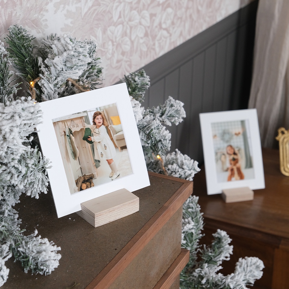 O Standup Passepartout é a forma perfeita de exibir uma fotografia especial com elegância e leveza. A imagem em papel lustre é colocada num passepartout branco e apoiada num bloco de madeira de bétula contraplacada, criando um objeto decorativo minimalista, mas cheio de presença, ideal para levar a magia do Natal a qualquer recanto.