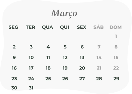 Consulta o nosso calendário com todas as datas em que estaremos encerrados e garante que recebes os teus produtos nas datas pretendidas. Antecipa as tuas encomendas e evita atrasos.