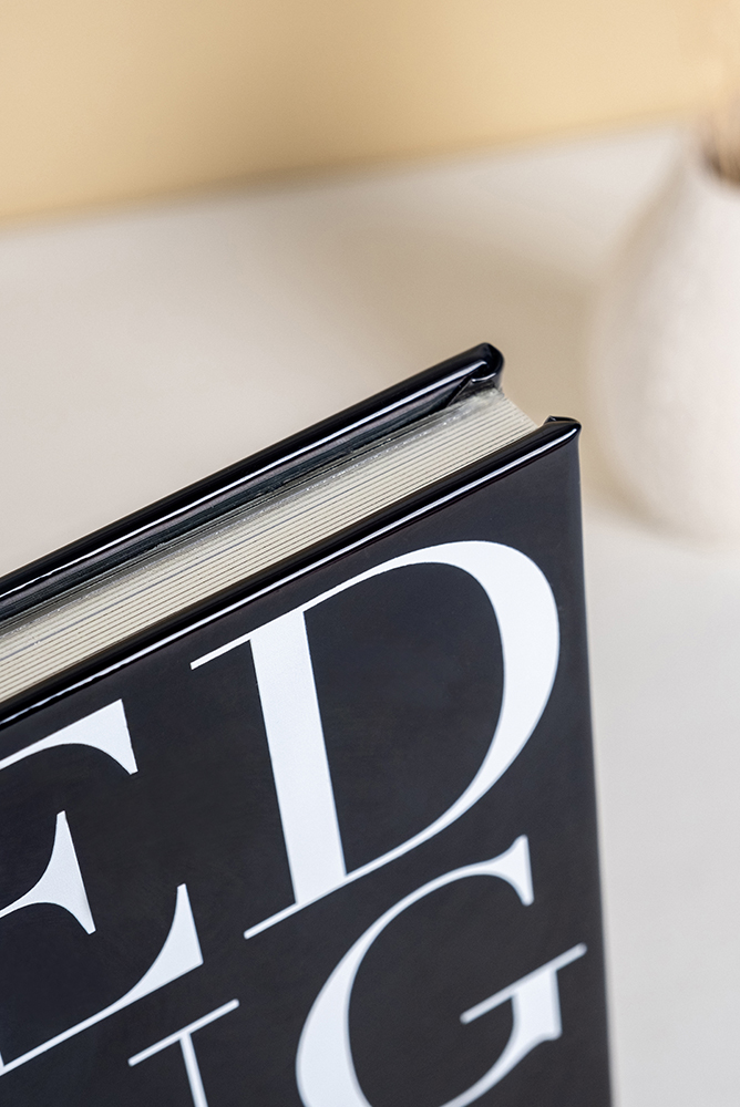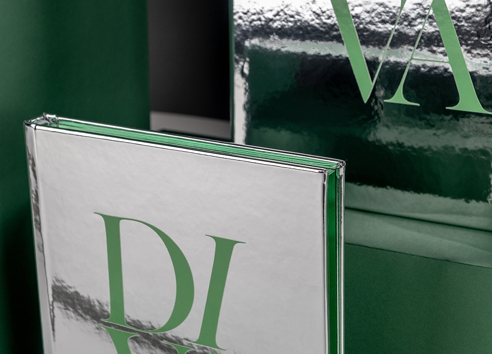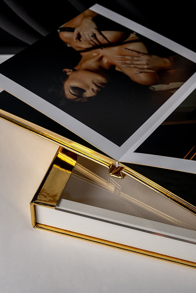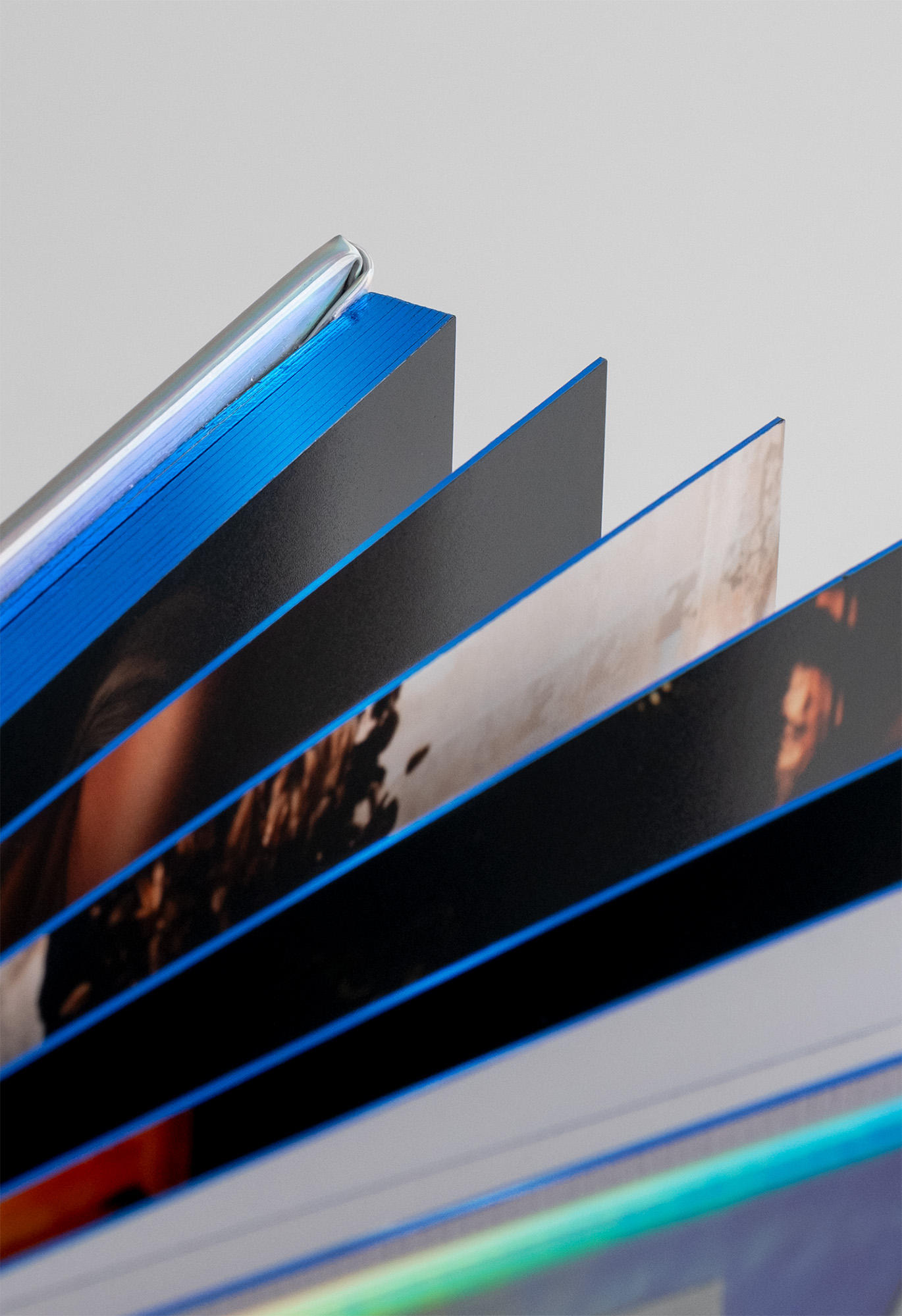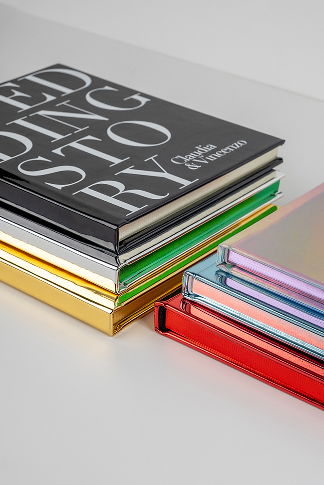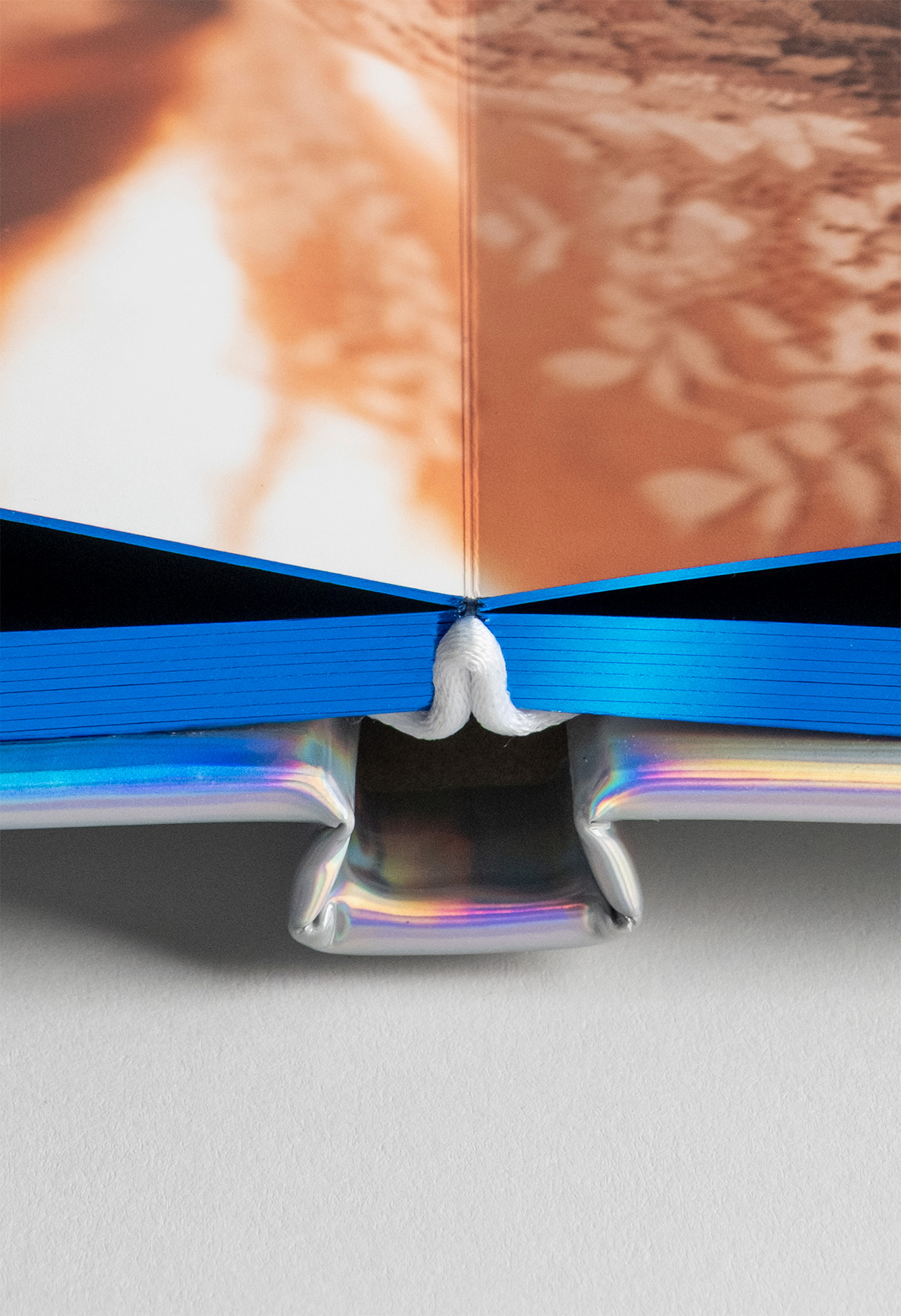 Uma personalização trabalhada por artesãos especializados, permite forrar os topos do miolo do álbum com um foil dourado ou prateado, foi desenvolvida a pensar nos clientes mais exigentes e que pretendem uma solução realmente única.