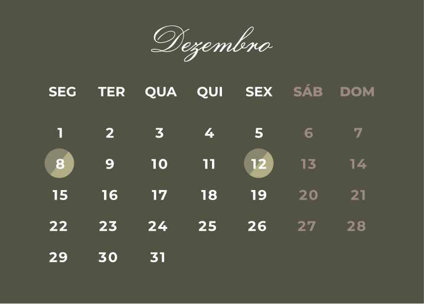 Encomendas de Mostruário: Encomendas de mostruário serão permitidas durante este período, sendo que cumprirão com os prazos regulamentares para a época natalícia.