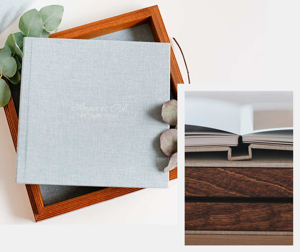 Um acabamento que consiste na adição de uma fita de cetim, um tecido luxuoso que é usado pelos melhores artesãos. Irá dar ao produto um toque de requinte e valorizar as memórias dos seus clientes.